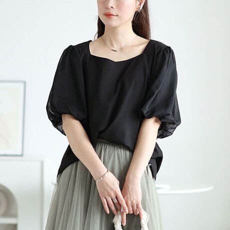 大人可愛いぽわん袖にキュン!シフォンバルーンスリーブプルオーバー体型を拾わないゆったり身幅&袖幅でゆとりのあるリラクシーなサイズ感でご着用いただけます◎透け感のあるシフォンバルーンスリーブで大人可愛く二の腕カバーしてくれます♪どんなスタイルにも馴染むシンプルデザインで着まわし力も抜群なので、一枚ではもちろん、サロペットやジャンスカなどのインナーとしてもお楽しみいただけます◎デイリーカジュアル〜オフィススタイルまで様々なシーンで大活躍間違いなしの一着です!