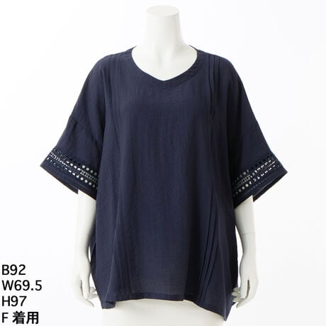 グリーンノート 大きいサイズ レディース ゆったり 半袖 シャツ ブラウス Vネック 刺繍 オーバー 5705106