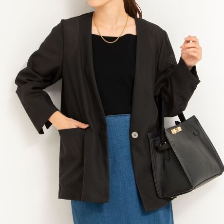 メッシュノーカラーVネックジャケット