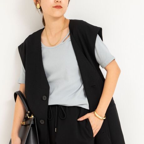 ・サイドカットが入ったゆったり開きのネックと変形Vネックのどちらも楽しめるのが魅力