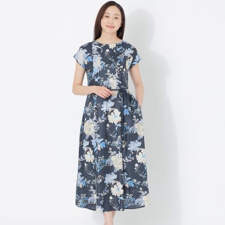 上身頃にタックを取り、華やかな花柄に更に表情をもたせたワンピース。