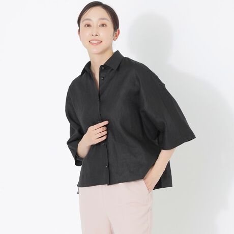 カラーリネンハーフスリーブシャツ