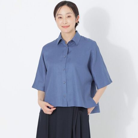 カラーリネンハーフスリーブシャツ