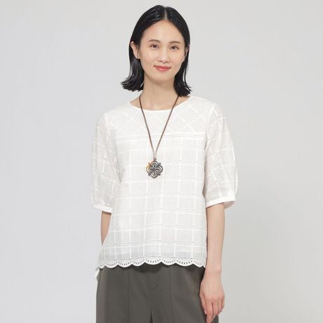 マルイウェブチャネル   /   トランスワーク   /   トップス   /   Tシャツ・カットソー   /   【ウォッシャブル】カットワークチェックコンビカットソー