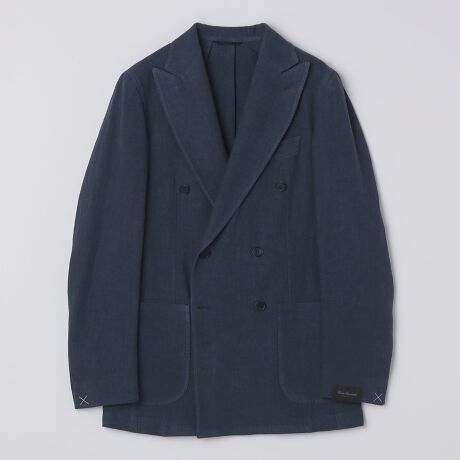 ダブルブレステッドは重厚感のあるイメージですが、コットン/リネンの素材感が軽快さを与えています。
