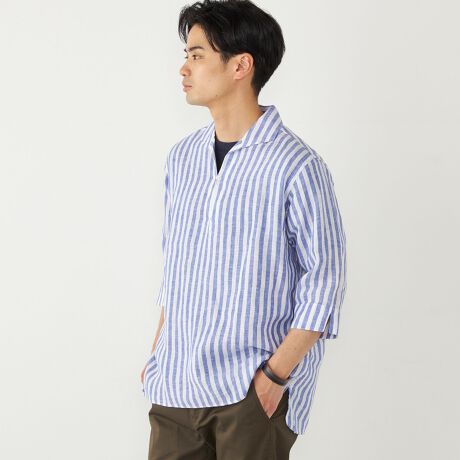 リネン100%の生地で仕立てたカプリシャツ。