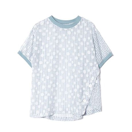 大小2種類のドットを使用した透け素材のプルオーバーです。