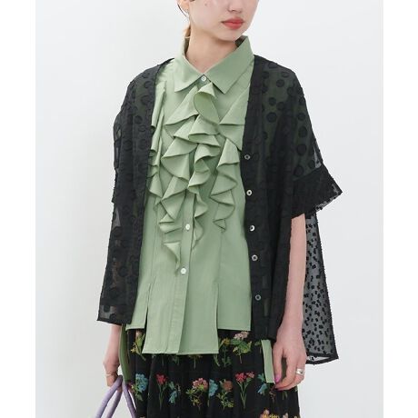大小2種類のドットを使用した透け素材のBIGシルエットシャツです。