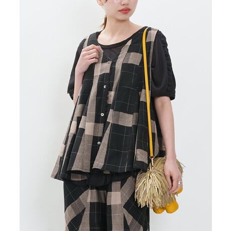 大きめチェックが可愛いノースリーブブラウスです。