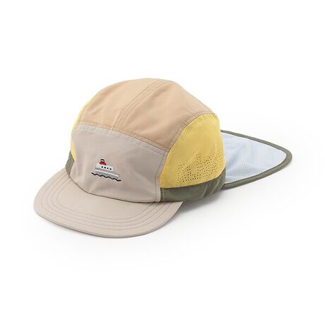 つけ外しできる垂れ布を備えたジェットキャップです。<br>垂れ布には保冷材が入るポケットつき。<br>両サイドのKLADSKAPパンチングで通気性も確保しました。<br>UVカットと接触冷感をほどこしており、アウトドアにピッタリ。<br>メンダコピスネームがついた面ファスナーベルトで、サイズ調整もできます。<br>内側にお名前を記入できるタグつき。<br>