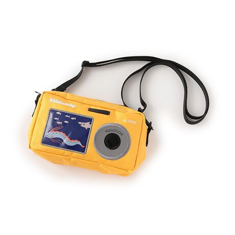 水中カメラ風デザインのユニークなポシェットです。<br>チンアナゴやリュウグウノツカイ、サメなどが映っています。<br>レンズ部分にリフレクター生地を使用しており、暗い時間でも安心です。<br>長さ調節可能な肩紐つき。<br>つけ外しは不可です。<br>内側にお名前を記入できるタグがついています。<br>