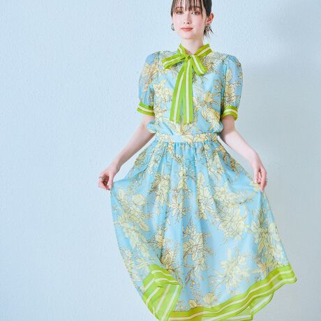 ・繊細でスッキリとしたタッチのフラワープリントに、引き締め効果のあるボーダーがアクセントになり、女性らしくフェミニンからアップデートしたこだわりの一枚。