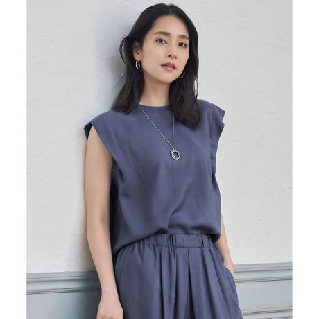 後ろ姿までサマになる、軽くて涼しげなノースリーブブラウス■デザイン肩周りに大きくタックを取ったプルオーバーブラウスです。ノースリーブですが、タックから生まれるドレープが程よく二の腕をカバーしてくれるシルエットです。しなやかで薄い素材なので涼しく着て頂け、袖がないので上に羽織るものを選ばない汎用性の高さもポイントです。後ろの襟ぐりからはボックスタックを入れ、後ろ姿にも程よくデザイン性を持たせることで、1枚でもインナーとしても活躍するアイテムです。同素材のパンツとのオールインワン風のコーディネートもおすすめです。■素材柔らかく綺麗なレーヨンと程よい光沢感のあるナイロンを、とろみとドレープ感に若干のハリ感を出してバランスよく仕上げたツイル素材です。非常に軽く、揺れるような動きのある綺麗な素材ですが、やや表情のあるラフな表面感に仕上げた大人カジュアルな素材です。接触冷感、UVケアの機能付きです。■同素材アイテムワイドパンツ(PRW7GM0507)キュロットパンツ(PRW7GM0508)