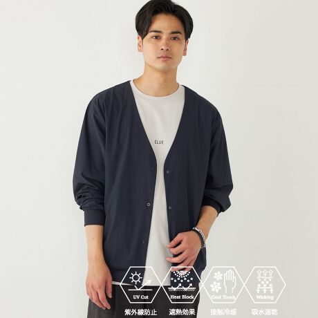 「Cool Sense」という多機能な素材を使用したカーディガン型の羽織りアイテム。