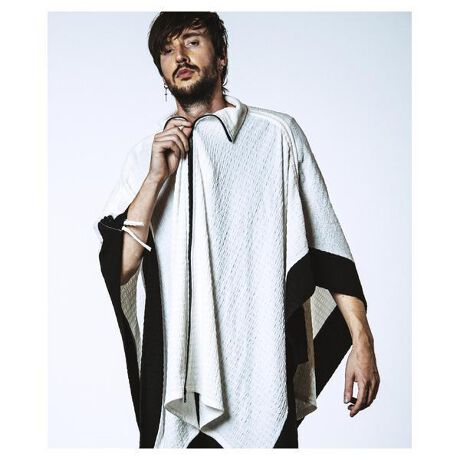 立体的な凹凸のある生地感とドレープを自在に調整できるドローストリング仕様が特徴のハイカラーポンチョ。ゆったりとしたシルエットにWジップファスナーを採用し、モードな雰囲気を演出するデザインに仕上げました。