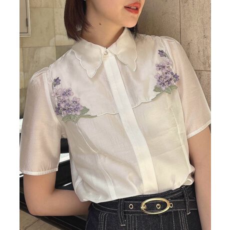 【洗える】ヴァイオレット 刺繍 ヨークシャツ