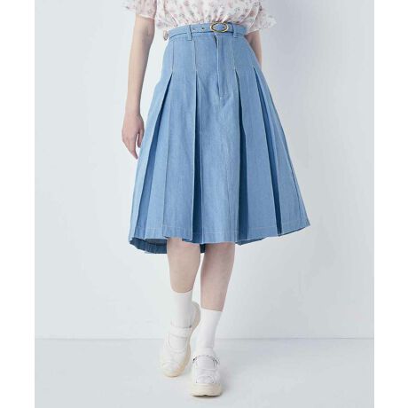 【洗える】ベルト 付き ボックス タック デニム スカート