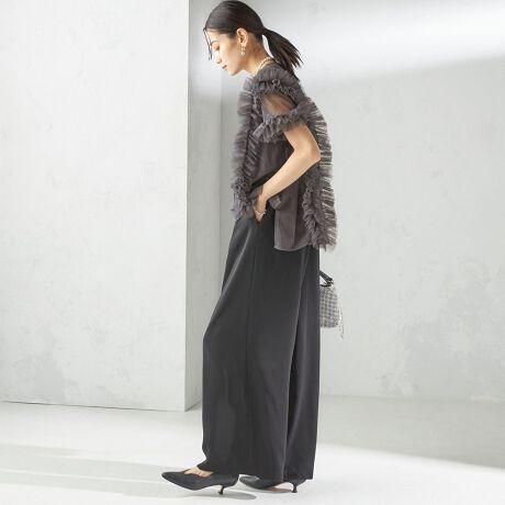 ほのかに肌を透かす、レディライクな軽やかなチュール素材をブラウスに使用しています。