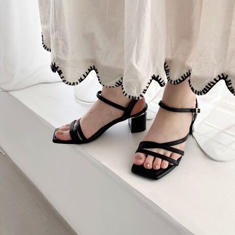 ふかふかクッションで歩きやすい アシンメトリーストラップヒールサンダル/51230