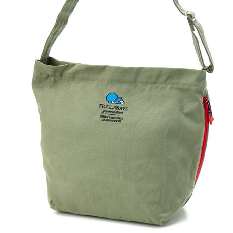 大ぶりなキャンバスショルダーバッグに寝転がるドラえもんを刺繍