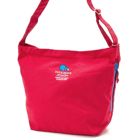 大ぶりなキャンバスショルダーバッグに寝転がるドラえもんを刺繍