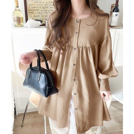 ふんわりとしたボリューム袖が施され、フェミニンな印象を引き立てます。