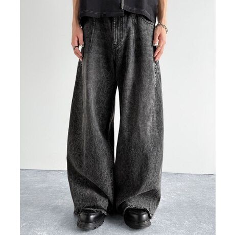ヴィンテージ加工ワイド3Dカーブデニムパンツ」