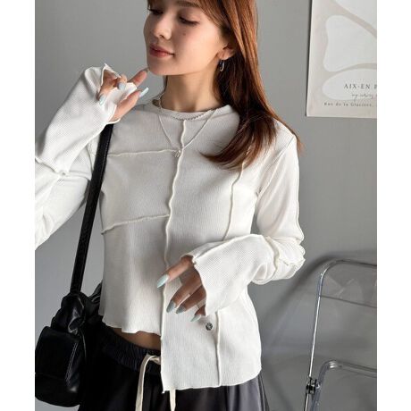 【mily bilet】さりげない華やかさを演出。アシメ切り替えクロップドテレコロンT(長袖)