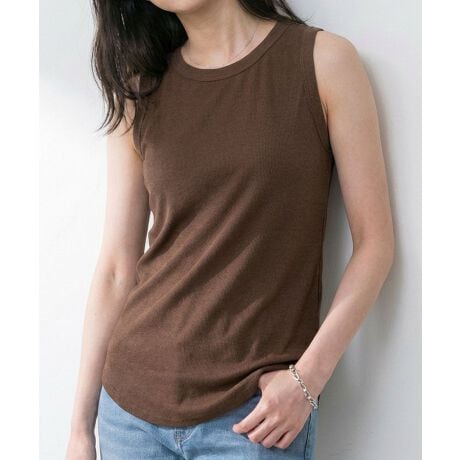 [型番:mw00281]肌触りの良い伸縮性抜群のテレコリブタンクトップボディラインを拾いにくい絶妙な寸法感は、インナーとしても、トップスとしても使える万能アイテムです!
