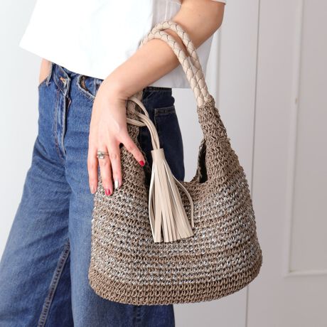 ラメが編み目に入っていて夏らしくてかわいいです。底のマチに変なたたみシワがはいらないように梱包されていてよかったです。
