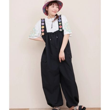旬なコーデが完成!クロシェストラップのサロペットパンツ