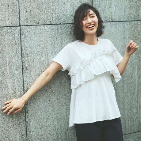 マルイウェブチャネル   /   オペークドットクリップ   /   トップス   /   Tシャツ・カットソー   /   フリルドッキングペプラムトップス【接触冷感洗濯機洗い可】