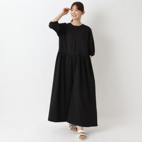 前開き 半袖オールインワン ワンピース