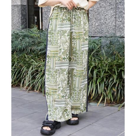 ストレートシルエットのワイドパンツにサイドラインのアクセントをプラス。