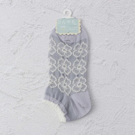 ◆【ひんやり】 花刺繍風 アンクルソックス