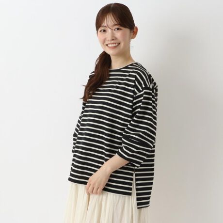 丸みのある袖の形が可愛いボーダートップス。