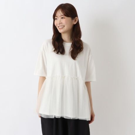 カット&チュール 切替えペプラムプルオーバー