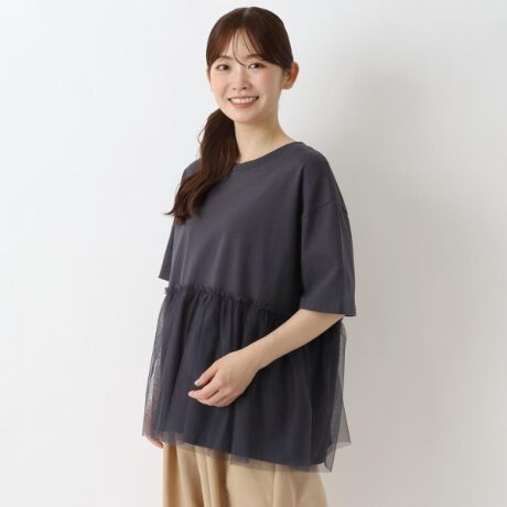 カット&チュール 切替えペプラムプルオーバー
