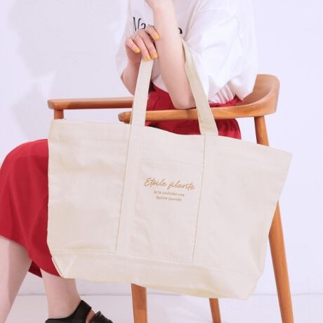 大容量でハンドルは肩掛けしやすい長さのキャンバストートバッグです。