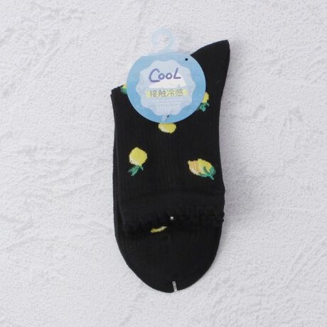◆【接触冷感】レモン柄クルー クォーターソックス