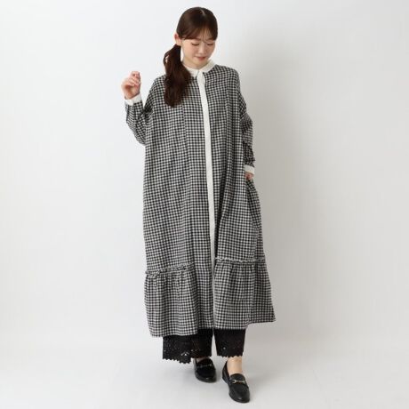 さりげない A ラインシルエットに裾フリルを加えて甘めを足したシャツワンピースです。