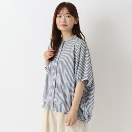 綿素材が涼し気なワイドなシルエットのブラウスです。