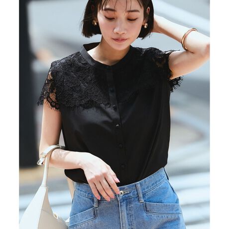 ・気分の高まるレースをシンプルなブラウスにドッキングすることで、毎日のコーディネートに取り入れやすいアイテムに。