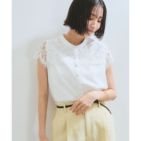 ・気分の高まるレースをシンプルなブラウスにドッキングすることで、毎日のコーディネートに取り入れやすいアイテムに。