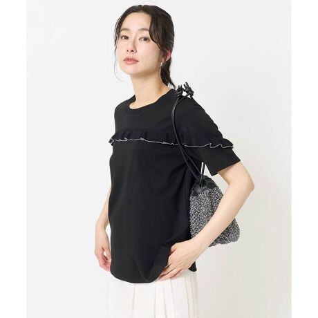 ・きれい見えスムース素材にニットフリルを合わせたカットソーです