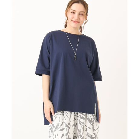 パンツに合わせやすい長めの着丈ですが、前振りにした切り替えスリットで、フロントをボトムインしてスカートに合わせても可愛くきまります。