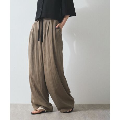 すとんと落ちるワイドストレートシルエットが美しく、ウエストはリラックスしたフィット感でストレスフリーな着用感も特徴。
