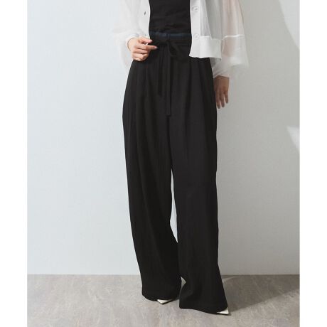すとんと落ちるワイドストレートシルエットが美しく、ウエストはリラックスしたフィット感でストレスフリーな着用感も特徴。