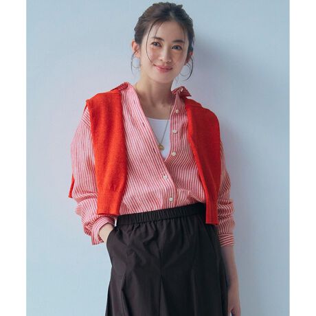 ベーシックなデザインのシャツブラウス。身幅と肩幅に程よくゆとりを出した着心地抜群の一枚。23区でタイムレスに愛されるシンプルでべーシックなシリーズで、幅広く活躍する汎用性の高いシャツです。ボタンを開けてさらっと羽織ることもできるので、夏の冷房対策にも◎。展開カラーは、清潔感のあるホワイト(#001)、キャッチ―なマゼンタ(#011)、品のあるネイビー(#075)、肌なじみのいいベージュ(#033)の無地4色と、華やかなトマトストライプ(#120)、ニュアンスカラーが今っぽいダークグリーンストライプ(#162)、こなれ感のあるダークブラウンストライプ(#135)、大人可愛いラベンダーストライプ(#183)のストライプ4色の計8色展開です。