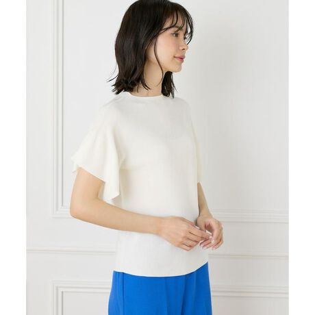 夏の名品《Cuoo》ホールガーメント®サマーニットシリーズにWEB限定デザインが登場!フェミニンな袖フリルデザインが新登場。身体に吸い付くことなのないすっきりとしたボディにデコルテを綺麗に魅せる上品な襟ぐりと甘すぎないフリル袖で程良く今っぽさを取り入れました。ホールガーメント®で継ぎ目なく編むことでストレスのない着心地です。リネンジャケットとの夏の通勤スタイルにもおすすめの1枚です。・水洗い可 《WHOLE GARMENT®/ホールガーメント®》株式会社島精機製作所が独自で開発した世界初の無縫製ニット横編機によって編成された無縫製ニットウェア。ニット本来の手触りと軽さを引き立て、ドレープ性を高め、ごわつき感をもたらす縫い目をなくすことで、よりよい着心地感を実現します。※ WHOLEGARMENT ®及び ホールガーメント®は、株式会社島精機製作所の登録商標です。《Cuoo/クー》フランドルがメーカーや工場の協力を得て開発した素材。肌に優しく、一年を通して快適な着心地を保つキュプラとポリエステルの交撚糸。キュプラは他の繊維と比べ、摩擦が少なく肌と触れ合っても刺激が少ないため、肌触りが良くやさしい着心地です。吸水性に優れ、べたつきにくくムレを抑えられます。夏はひんやり冬は暖かく、通年にわたり心地よく着こなせます。